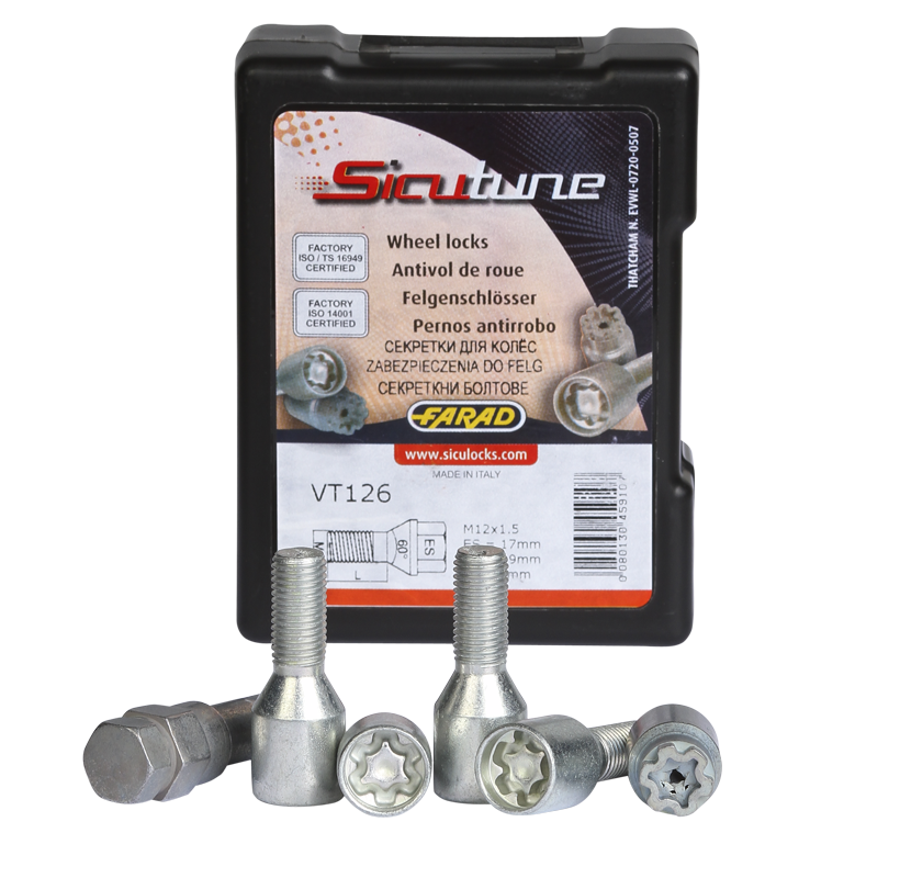 Противоугонные болты и гайки фирмы FARAD (Италия) отвечают самым высоким стандартам качества. Более 25 автомобильных производителей, среди которых все мировые лидеры, доверяют 35-летнему опыту компании и используют эти противоугонные устройства в качестве оригинальных комплектующих.